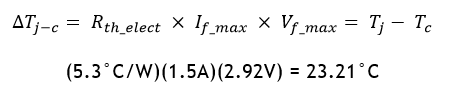 Once all of these values are collected, first calculate the temperature difference across the LED package between the junction and case at the maximum rated current.